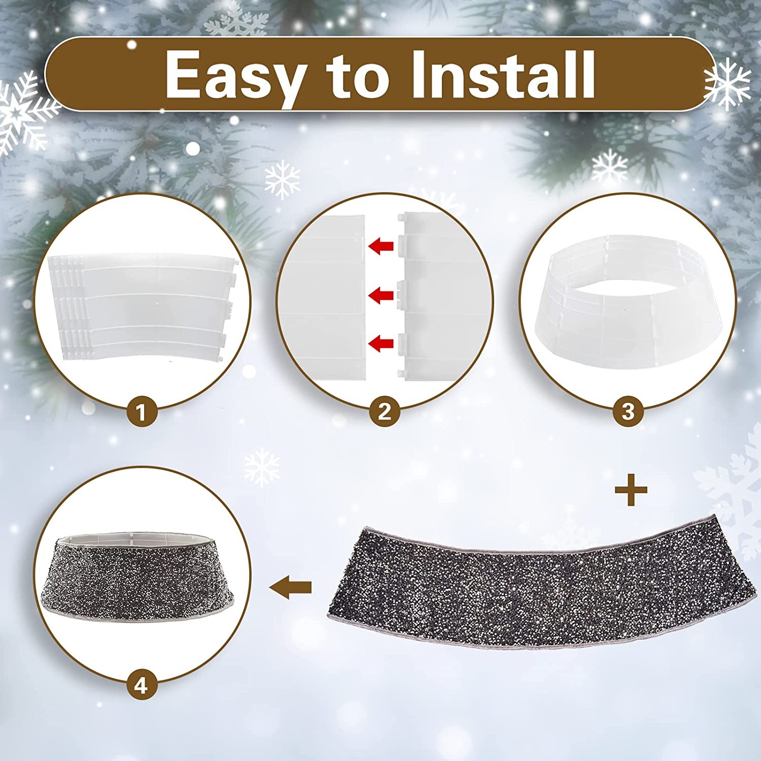 • Quick Assembly:This Christmas tree skirt consist of 6 pieces plastics sheets and cloth collar, easy assembly required. Christmas decorations connect plastic sheets together by hooks at the joint, then dressing up the cloth collar.