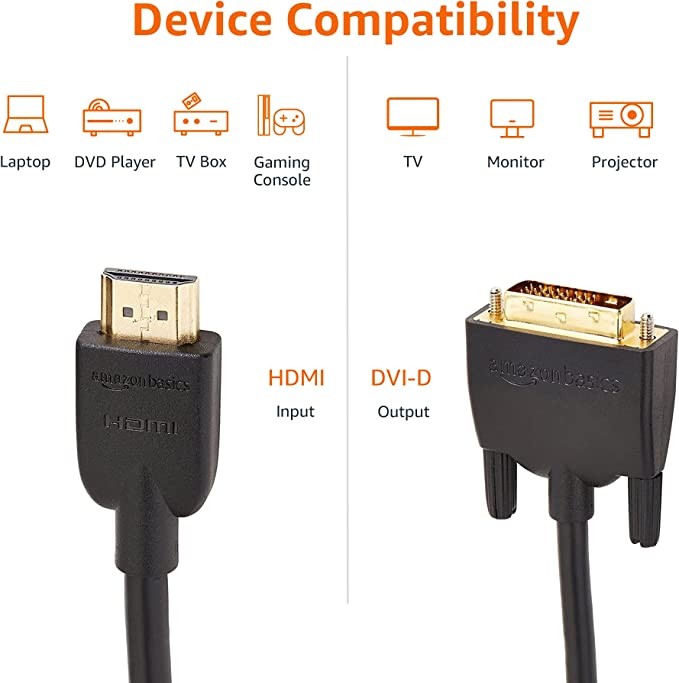 AmazonBasics Amazon HI HI TO DVI adapter cable, 1 pack black, 6 ft. (approx. 1 .8m)