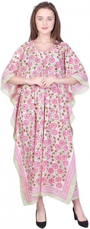 Fabric Venue Women's Ethnic Hand Block Printed Cotton Maxi Robe Pajama Dress Floral Dress