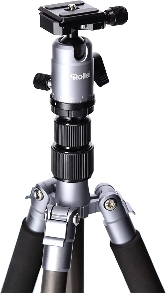 Rollei compact portable travel tripod, carbon fiber, titanium, with small package, ball head and tripod bag