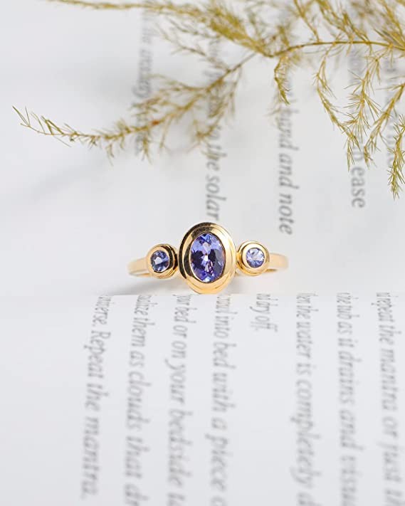 YoTreasure 6.5x4.5 MM Tanzanite Ring in 14K Yellow Gold