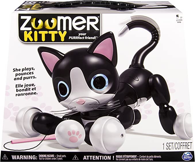 • Includes: 1 Zoomer Kitty, 1 Kitty Toy, 1 USB Charging Cable (wall charger sold separately), 1 Instruction Guide